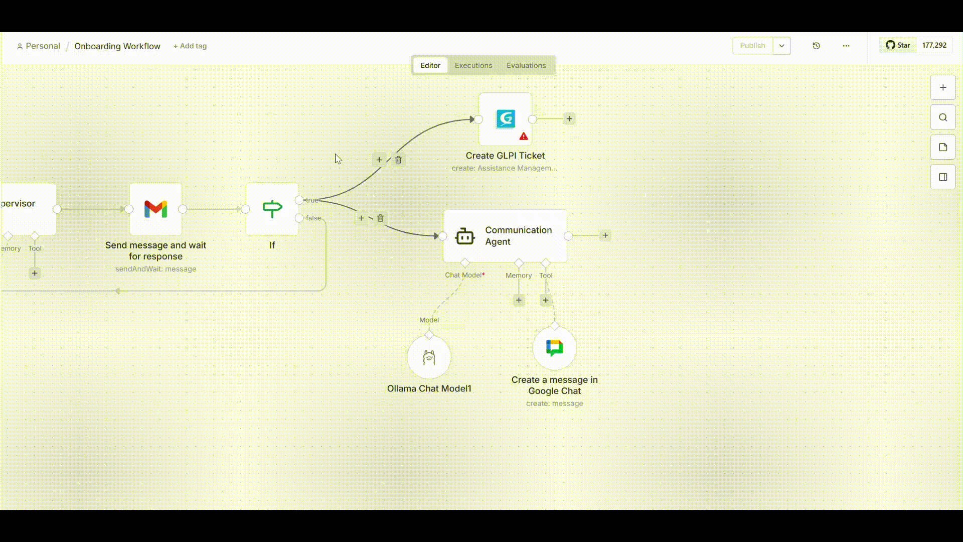 - Add an AI Agent Node (Communication Agent)